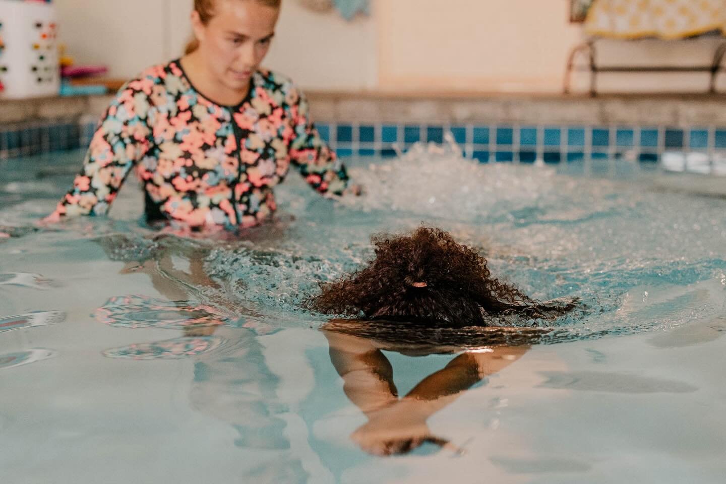 Our parent-tot small group lessons are so fun and a fan favorite! These classes run for 5 consecutive weeks. This class happens at the same time each week for 30 minutes. Grown-ups and their littles will enter the pool with me and we will move through a variety of introductory water skills and submersions. Each class we will talk about why it's important to do the skill at hand and the goal we are trying to reach with each kiddo. Songs and play will be prioritized in class as well as beginning self rescue techniques. This course is also a great entry into the water before the Dive In Fully 5-day lesson package.